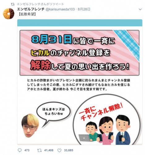 『ヒカルのチャンネル登録解除キャンペーン』!