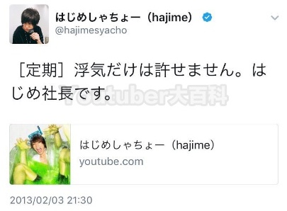 ◆はじめしゃちょー、木下ゆうかとの交際&浮気を認める!