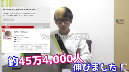 ◆ヒカル(Hikaru)、チャンネル登録者増加数で日本一に!