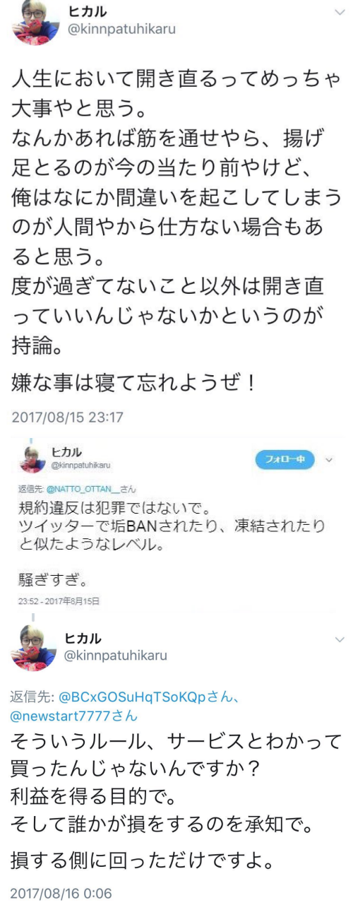 ヒカルさんがTwitterで発言した内容をまとめますと、
