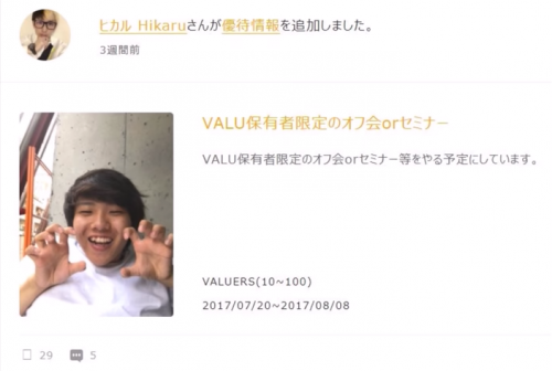 つまり、自分のVALUを買ってくれた人には特別に何かサービスをしますよ!という事です。