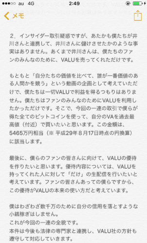 →あたかも自分たちが井川さんと連携して、井川さんを儲けさせたかのように言われているが事実無根。井川さんは、自分たちのファンの為にVALUを売ってくれただけ。 - ③VALUの利用について